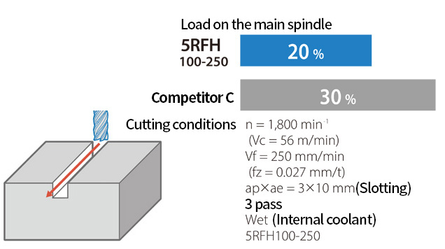 5RFH reduced spindle load by 10%, resulting in quieter cutting noise, less machine vibration, and a better surface finish.