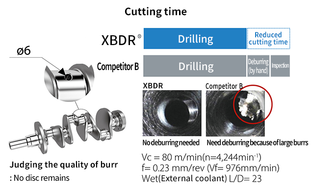 Eliminating deburring and full inspection has resulted in significant time savings, and tool Tool life has also increased by 1.5 times.