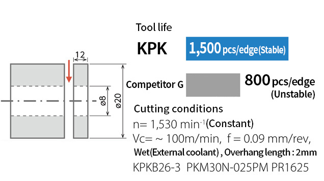 While products from other companies experienced unexpected failures and were unstable, KPK provided stable machining with superior edge condition (Customer evaluation).