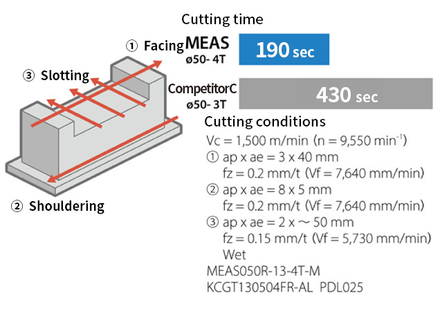 MEAS reduced machining time by more than 50% compared to competitor C's product.