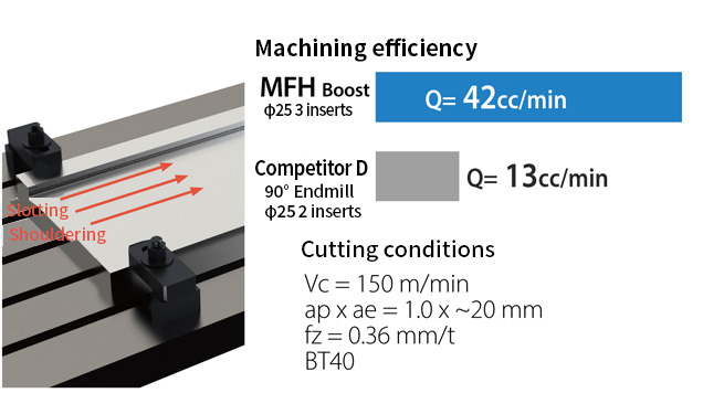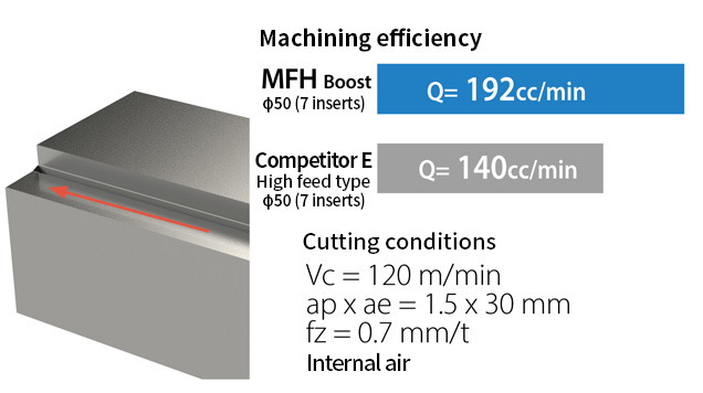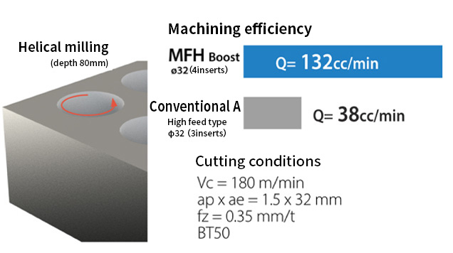 Dramatically improved machining efficiency through large depth of cut and high-feed machining.