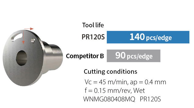 Excellent heat resistance, wear resistance and stability enable long tool life and stable machining of super heat-resistant alloys.