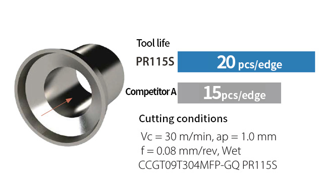 Recommended for continuous finishing to light interruption of stainless steel. Further extension Tool life is possible.