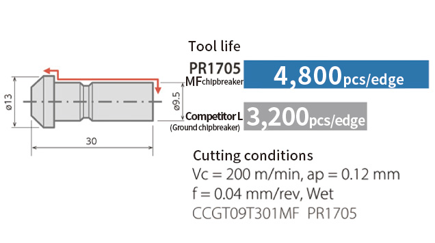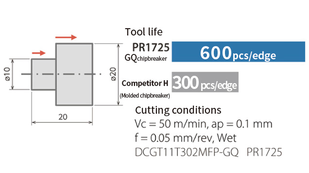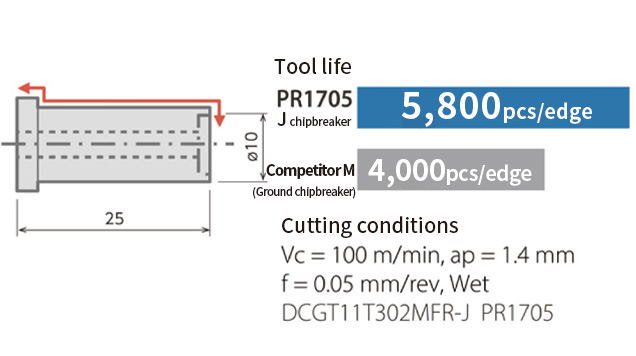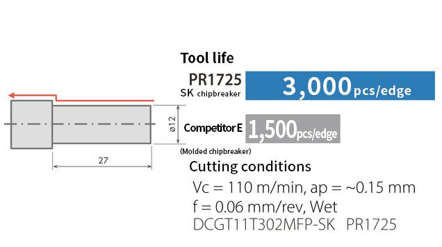 Combined with PR1725/PR1705, it achieves long tool life and stable machining.
