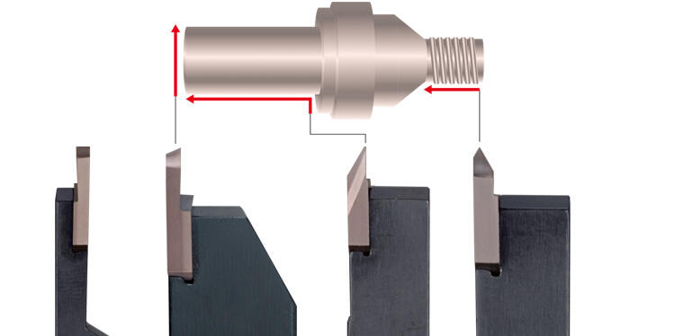 突切り、あとびき、ねじ切り加工に1本のホルダで対応可能。用途に合わせた幅広いレパートリー。